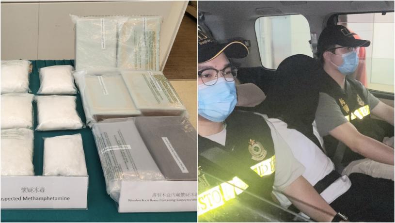有毒販利用偽裝成書本的木盒,以快遞包裹形式,試圖從美國經內地輾轉偷運冰毒入境,被深圳灣管制站海關人員及時偵破。其後,關員經監控遞送,順藤摸瓜搗破位於鰂魚涌、以住宅單位為掩飾的毒品倉庫。行動中海關拘捕一名30歲男子,共檢獲8.5公斤懷疑冰毒及300克懷疑海洛英,市值約520萬元。