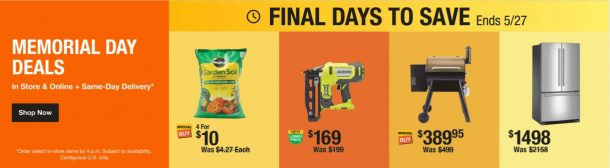作為家居改善的首選地點,Home Depot在Memorial Day也提供了從高端燒烤架到高科技割草機,再到戶外家具等各種產品的折扣,折扣高達45%。