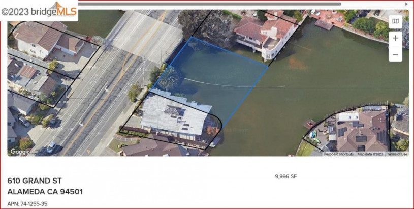 阿拉美達市Grand街610號物業處於水中。Redfin