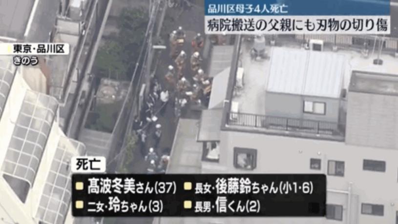 日本東京品川區發生恐怖命案,一名37歲主婦與3名年幼子女在家中遇害,全部人胸部和頸部都有刀傷,失血過多而死,事件震驚整個日本社會。