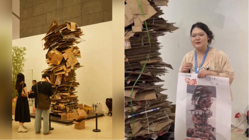 近日在北京的中央美術學院畢業展上,一件名為《超級蜂巢》的作品引發熱議。眾多網友因其造型為一堆廢棄紙盒子捆綁在一起,吐槽這就是「一堆廢紙殼」「一堆垃圾」。作者為作品「給大家誤會」致歉,強調背後有特別的創作意念。