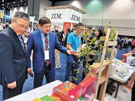 儀式結束後,嘉賓們參觀中國展區的30個展位和博覽會其他展區。在漳州市壯壯紙制品有限公司的展位,展商林壯鍵先生介紹說,公司經營紙制產品,是第一次參加芝加哥國際餐飲、酒店用品、食品展覽會。據美國餐飲市場需求,提供餐巾紙、廁所用紙、擦手紙、信用卡紙、外賣盒。