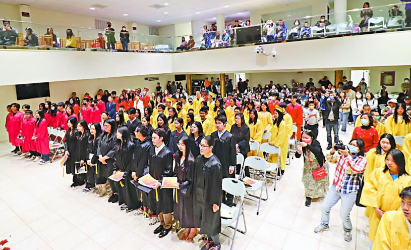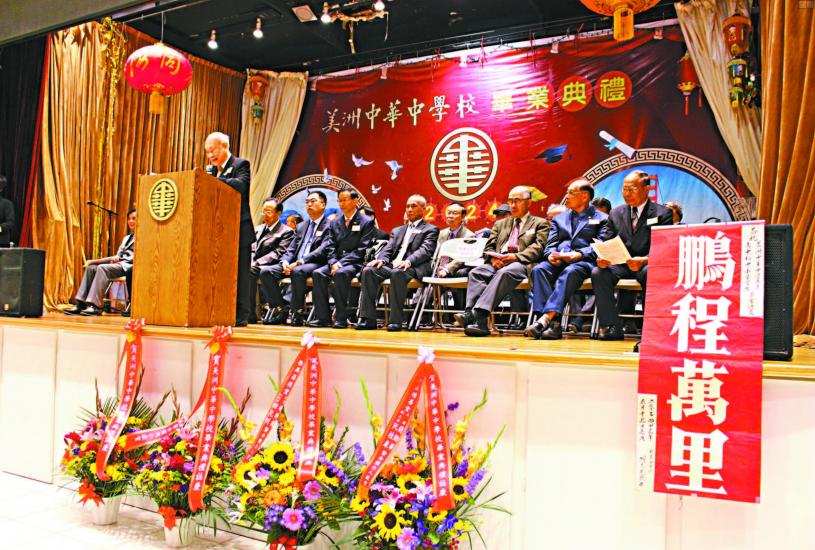 頒發證書儀式結束後,在學生楊雅文領誦下,全體學生一起用清澈響亮的聲音誦讀《三字經》選段,隨後,校長潘增壽宣佈,美洲中華中學校高中第89屆、初中第98屆、小學第113屆畢業生共114人完成 成績及格。全體畢業生——今天正式畢業了。畢業生代表伍寶瑩同學指揮,齊唱中華中學校校歌,聲音宏亮,響徹禮堂。