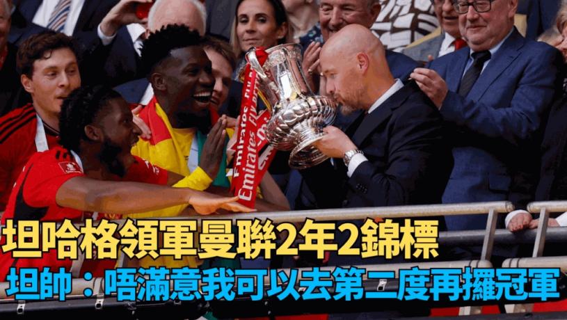 曼聯今季英超成績倒退只排第8,足總盃冠軍的歐霸席位成為他們來季出戰歐洲賽的唯一希望,亦被視為坦哈格保住帥位的救命符,結果,紅魔由阿歷山大加拿祖和明奴各建一功2:1擊敗曼城捧盃,難怪坦帥賽後風騷,並指自己是紅魔近年成績最好的領隊:「當我接手曼聯的時候,球隊正在陷低潮,現在球隊正在發展中,到季尾能夠有錦標落袋是不錯。我執教曼聯兩年間,拿到兩項盃賽冠軍,3次打入決賽,成績應該不差。回顧曼聯近10年的成績,進入決賽的次數和奪得的錦標實在不多。」