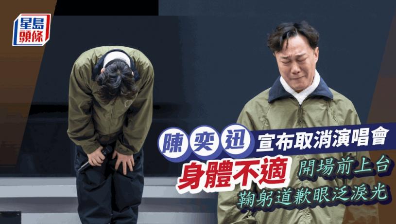 陳奕迅(Eason)的「FEAR AND DREAMS EASON CHAN IN CONCERT」巡迴演唱會,近日正在杭州舉行,昨日(24日)剛滿100場,豈料今日(25日)第101場開始時,陳奕迅突然上台,含淚宣布因身體不適,今明兩場演唱會延期至27及28日,陳奕迅隨後亦於微博貼文再度致歉。