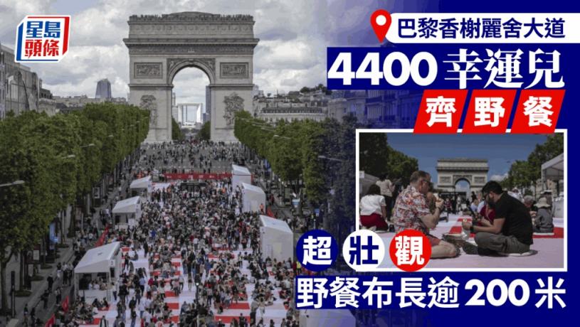 巴黎奧運即將於7月登場,預計屆時將迎來1500萬觀光客。在奧運開幕前,巴黎最具象徵意義的香榭麗舍大道率先舉行有超過4000人參加的超大型野餐,當中用到的野餐布面積逾4000平方米,蔚為奇觀,可望創下健力士世界紀錄。