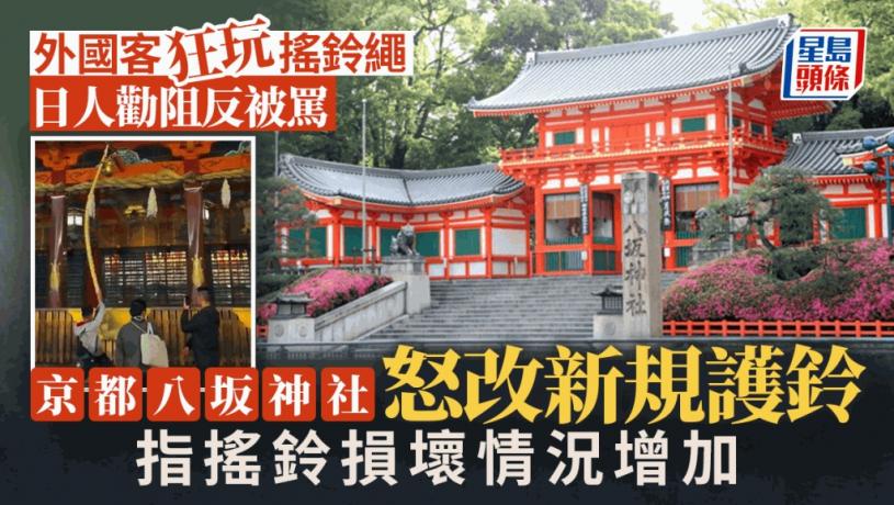 日本祇園知名景點八坂神社本殿,2020年被指定為日本國寶,吸引大批遊客參觀,是全日本2300間八坂神社的總本社,也是日本三大祭典之一的「祇園祭」舉辦地點。不過,一段疑似外國遊客故意用力搖晃八坂神社本殿搖鈴繩玩鬧,相關影片在網上瘋傳,激怒不少日本網民。八坂神社為此更改規定,每天下午5時至翌天早上6時收起主殿的搖鈴繩,以防再有遊客搞事。