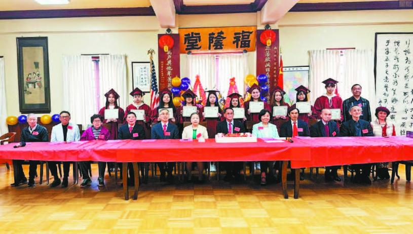 ( 僑社記者馬紅兵報導)5月18日下午二時,舊金山南僑學校舉行高中第28屆畢業禮,12名高三學生,完成高中學習順利從南僑學校畢業。南僑學校校董會主席關信民、校監胡同;九江慈善公會主席陳樹輝、西樵同鄉會會長郭瑞玲、獅山同鄉會會長戴文健;南海福蔭堂司庫陸潮基、南僑學校司庫關麗明、南海福蔭堂值理關沃明、梁寶鶼、劉焯恩、孔慶端,顧問暨展圖;南僑學校教師職員、高中畢業生及家長出席畢業典禮,陸潔儀老師任典禮司儀。南僑學校校董會主席關信民致詞表示:今天是南橋學校第28屆高中畢業典禮的好日子,他首先祝賀高中畢業的同學們,各位同學努力學習,由幼稚園一直到學習到高中畢業,長達12年來全力以赴,從不間斷,同時要贊揚各位學生家長不辭勞苦,耐心栽培,堅持每天或每周送子女到校上課,鼓勵子女學習華文;感謝老師們的孜孜不倦,悉心教導,使中華文化能在海外弘揚,蓬勃發展,生根發芽。當然,我更要大力贊揚同學們經過漫長學習歲月,終獲佳績,順利畢業。同學們也在英文中文學校高中畢業,將要踏上人生另一個里程碑,希望你們選擇理想的大學,繼續深造,為國家為社會貢獻力量,發光發熱。祝大家身體健康,萬事如意,同學們學業進步,再攀高峰。