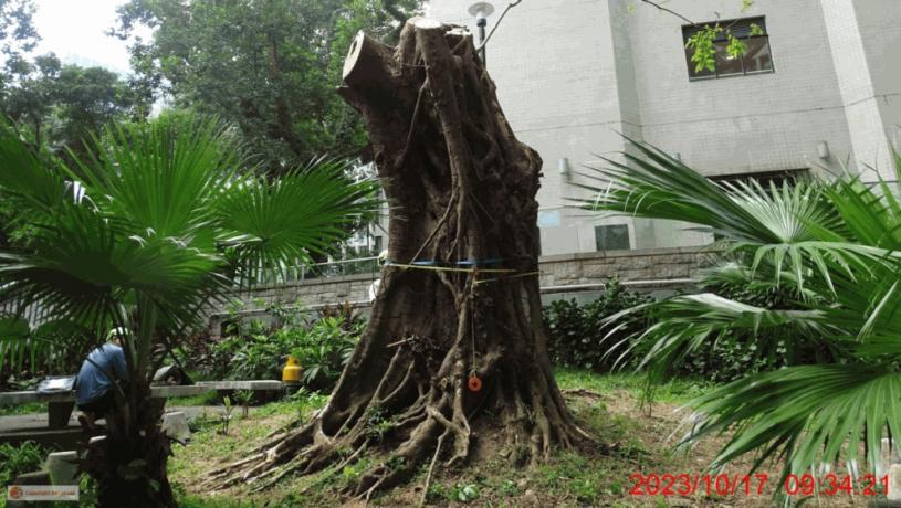康文署今日(27日)宣布,將於6月1日移除中環律政中心一棵結構及健康狀況欠佳的古樹名木,該樹木是一棵大葉榕(黃葛樹),原高約13米,2018年超級颱風「山竹」襲港期間樹冠受嚴重破壞,署方經6年「救治」,惟該樹健康狀況持續轉差,現時只餘一根約4.5米高樹幹,無法復原,遂決定移除。