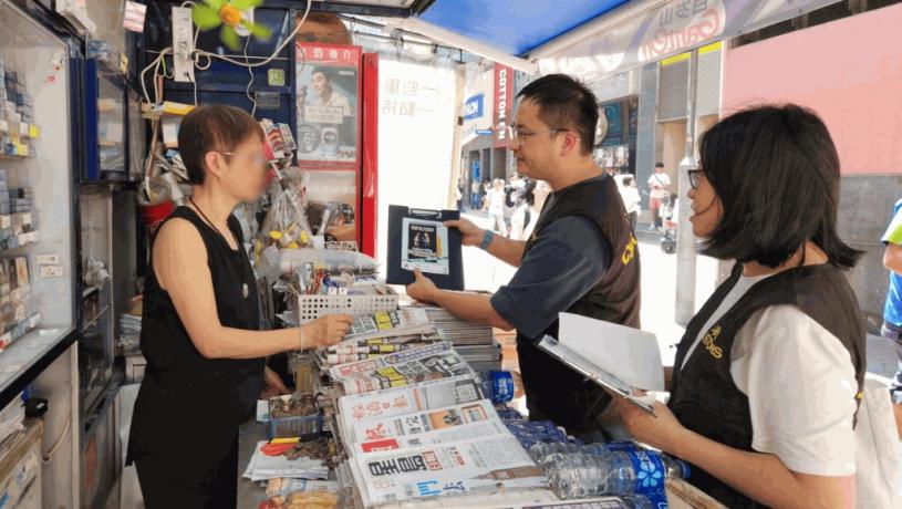 香港海關稅收罪案調查科聯同情報科人員,一連兩周巡邏全港各區超過300檔報攤。香港海關fb