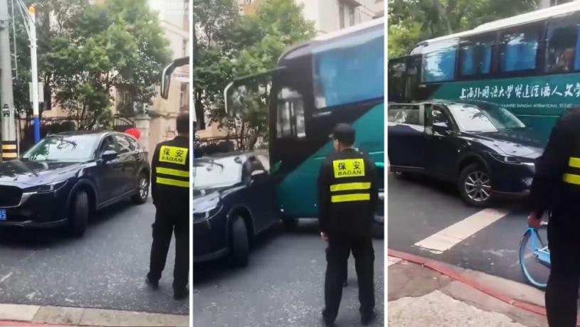 內地網絡今日熱傳一段據悉是在上海虹口區拍攝的影片。片中見一輛黑色私家車停在路中心,一輛綠色旅遊巴原本停在一旁,突然開車將私家車「頂開」。影片引起網民熱議。