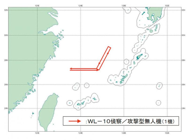 日本防衛省稱,WL-10從中國大陸方向飛來,至少在東海繞飛兩圈後返航。從防衛省公布航跡圖來看,該無人機似乎是從中國的浙江出海,在釣魚台北方空域飛行。日方在報道中所稱的「WL-10」,從照片上看類似中國「翼龍-10」無人機,即解放軍所稱「無偵-10」(WZ-10)高空高速無人攻擊機。