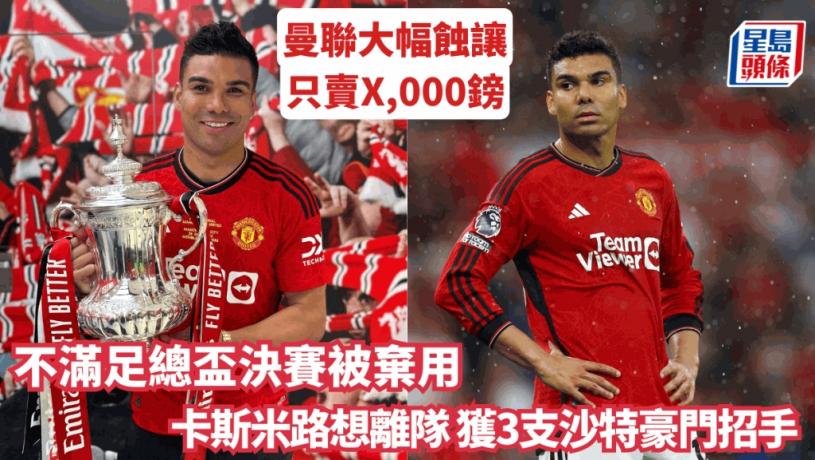 卡斯米路在日前的英格蘭足總盃決賽,被曼聯領隊坦哈格棄用,先列入後備名單,最後更稱傷缺陣,據巴西媒體《Goal》報導此子對被棄用十分不滿,萌生離隊念頭。消息指有3支沙特阿拉伯豪門球隊有意簽入他,包括C朗拿度效力的艾納斯,而曼聯只標價3,000萬鎊,比2年前的買入價足足平一半。