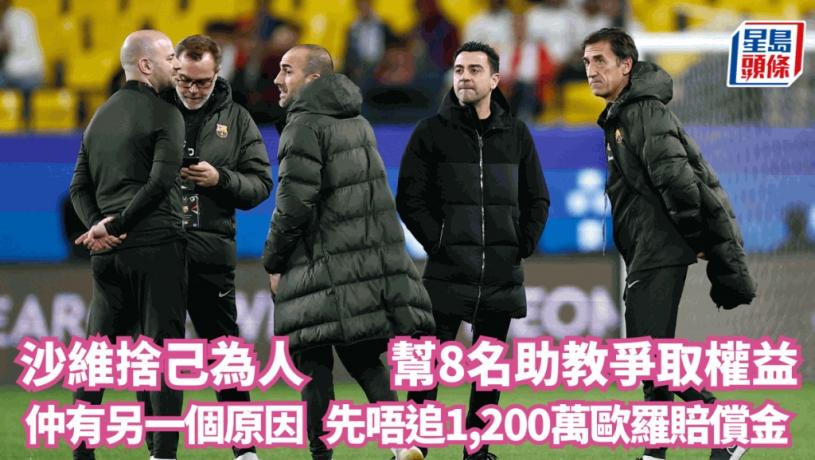 巴塞隆拿日前宣布辭退教練沙維,後者按規定可以獲得餘下一年薪金作為賠償,即1,200萬歐羅(約1億港元)。然而西班牙媒體《阿斯報》透露沙維願意捨棄這筆賠償金,要求巴塞確保支付其教練團隊8名助手全數約300萬歐羅的薪金,以肯定他們獲得應有的酬勞。