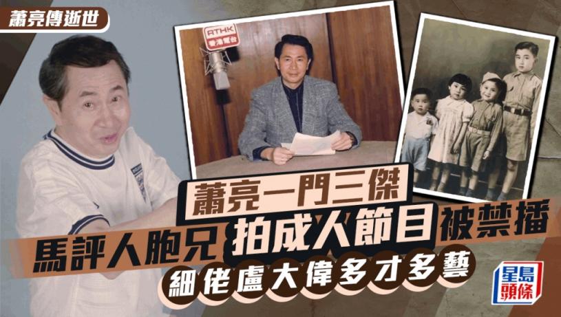 今日(29日)網上忽然瘋傳有「靚聲王」之稱的前TVB藝人蕭亮(原名盧永華)離世消息。蕭亮雄壯響亮聲音至今仍為很多觀眾的集體回憶,一度移民加拿大的他,回流後在2000年憑經典劇《男親女愛》人氣急升,其後再度回歸多倫多過退休生活。蕭亮在六兄弟姊妹中排行第四,家中一門三傑俱曾在圈中發展,其中著名馬評人盧遠及已故電視藝員盧大偉分別為其胞兄及胞弟。