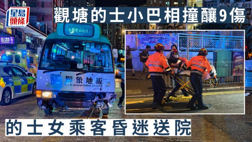 今日(5月29日)晚上近9時,觀塘協和街近月華街交界有的士及小巴相撞,事件中導致9人受傷。當中一名的士女乘客初時盆骨受傷,及後昏迷送院搶救。