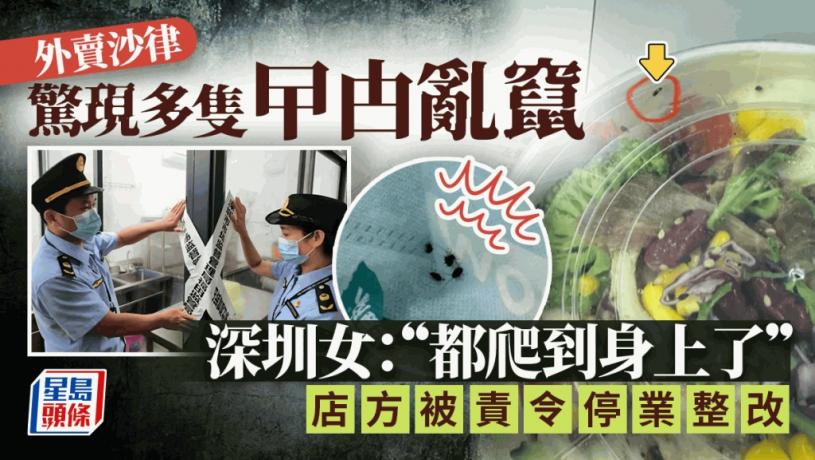 深圳福田一名女子29日稱點減肥餐外賣,打開包裝袋發現有數隻小蟑螂在爬。經深圳市場監管局現場核查,該店後廚防鼠防蟲措施不到位,已責令停業整改並立案調查。次日,店家回應,正進行全面消毒,已暫停營業。