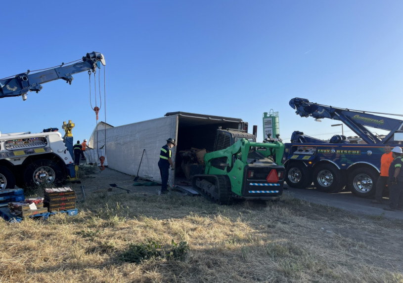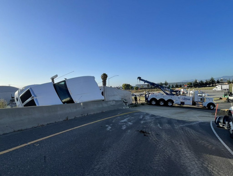 一輛載有數萬磅草莓的卡車凌晨在聖荷西880公路與101公路交匯處翻車,導致101號公路北行方向與880公路北行方向之間的匝道於周三上午關閉。