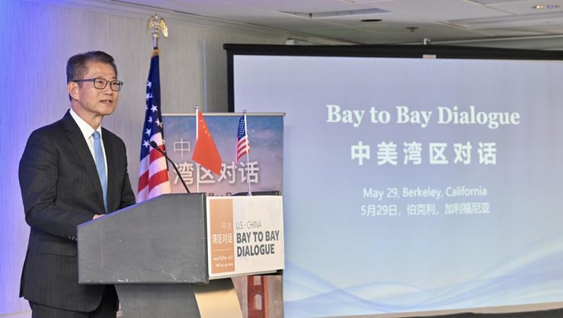 由財政司司長陳茂波率領的香港特區政府代表團周三(加州時間29日)聯同廣東省省長王偉中率領的廣東省代表團,以及澳門特區社會文化司司長歐陽瑜率領的澳門特區代表團,一起出席在美國加州柏克萊市舉行的「中美灣區對話」 和「中美地方氣候行動高級別活動」。