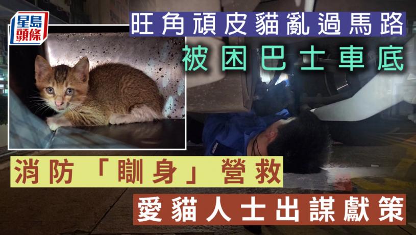 喵喵亂衝馬路被困,今(30日)傍晚6時許,一輛296C九巴沿旺角彌敦道往深水埗方向行駛,至荔枝角道交界時,一隻小花貓突然竄出馬路,捲落車底被困,車長停車報警,救援人員接報趕抵拯救,發現小貓被困右尾轆頂部,使用大量工具營救包括內窺鏡及繩子,更一度捐入車底,但因小貓被困位置隱蔽,屢屢失敗,其間有熱心人士在場放下貓糧誘貓咪離開車底、亦有街坊帶來愛貓企圖「物以類聚」,引貓咪走出與同類嬉戲,約兩小時後,消防員終把小貓救出,幸無大礙,愛協帶走。