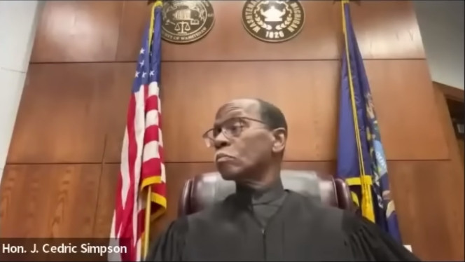 法官辛普森(J. Cedric Simpson)確認哈里斯已停下車後開始法庭程序。