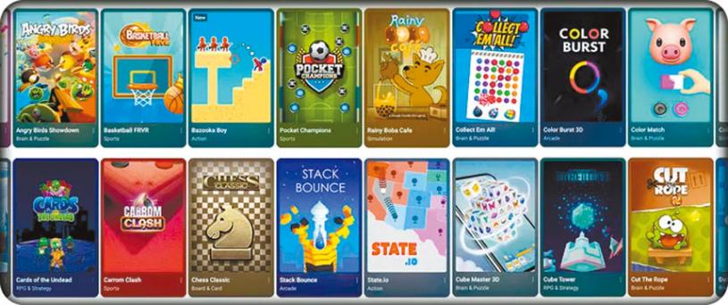 Playables的陣容包括一些受人喜愛的遊戲,例如《Angry Birds Showdown》、《Words of Wonders》、《Cut the Rope》等等。它還引入如《Stack Bounce》和《GameSnacks》等遊戲,前者是一款谷歌在其HTML迷你遊戲服務上提供的遊戲,後者是在其內部孵化器Area 120中開發。
