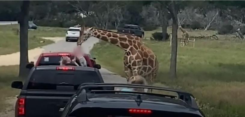 德州一對夫妻帶著2歲女兒逛野生動物園時,小朋友本來想餵食長頸鹿,沒想到反被長頸鹿當成食物,從車裡叼了起來。還好在媽媽的大聲喝斥後,長頸鹿乖乖的將小朋友放下,她也沒有受到任何的傷害。