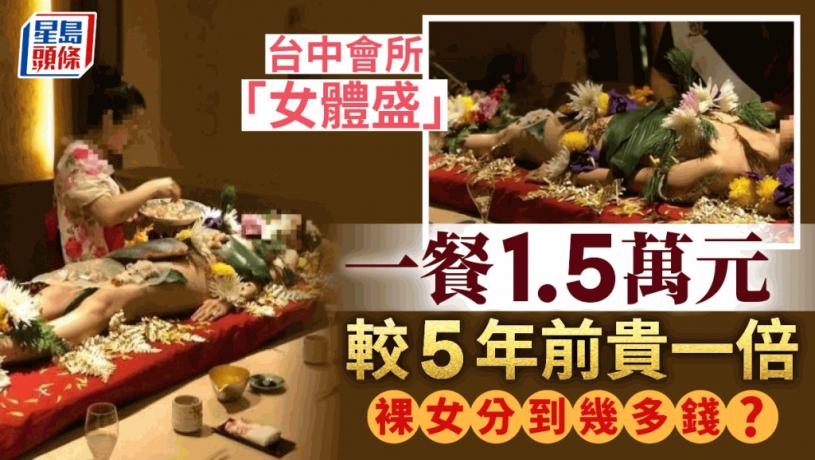 有台灣傳媒報道指,同樣的「女體盛」五年前一場約3萬元新台幣(約7500港元),隨著人工及食材等成本上升,今年一場已經來到6萬價格,一餐「女體盛」幾乎等於當地一個普通打工仔的月薪,當中還不包含水酒費用。