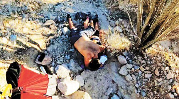 警局出動直升機搜救人員飛抵現場,發現兩人臥倒蜷縮在乾涸的河床上。