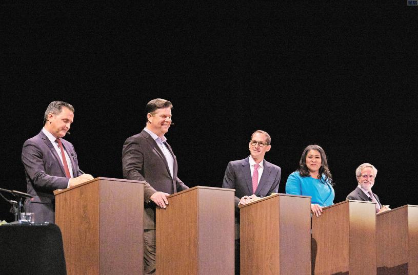 今年11月三藩市市長選舉備受關注,5位主要候選人周三晚在市府附近的歌德斯坦劇院(Sydney Goldstein Theater)參加首場辯論,1600多張門票售罄。
