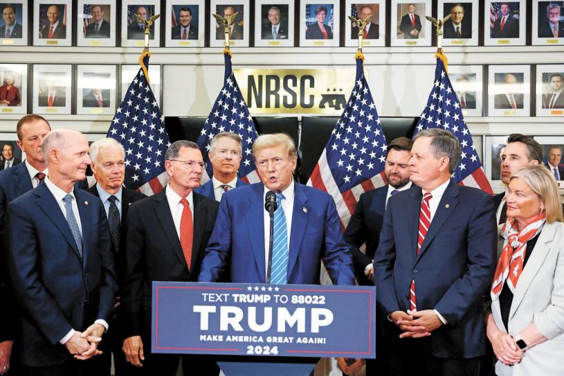 前總統特朗普前往國會山,為參眾兩院的共和黨議員打氣,並闡述自己一旦重新執政的議程,期間他與參議院少數黨領袖麥康諾上演和解戲碼,強調共和黨必須團結才可贏得選舉。這次是2021年1月6日的騷亂事件後,特朗普首次重返國會山。