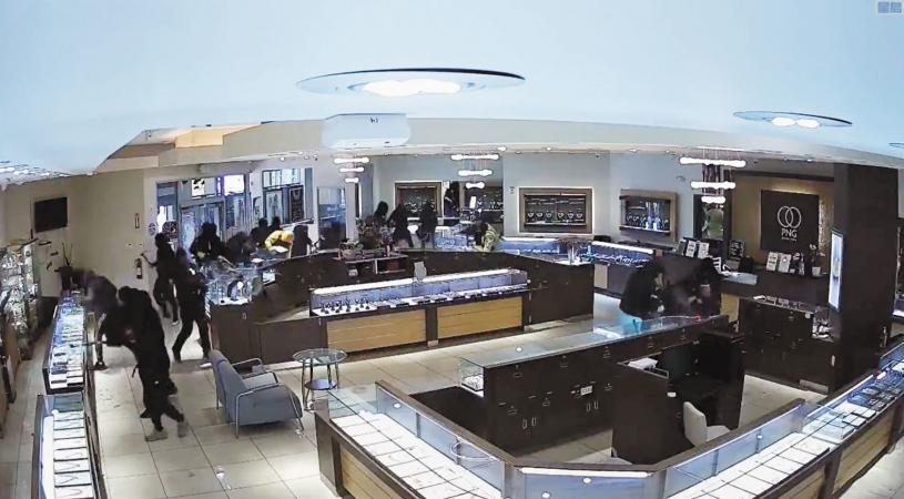 據辛尼維爾公共安全局周四(13日)宣布,劫案發生於周三下午1時30分左右,警方接報後派員趕到位於El Camino Real 791 E.的珠寶店PNG Jewelers,案發時約有20人用錘子和其他工具砸碎玻璃櫃劫走珠寶。