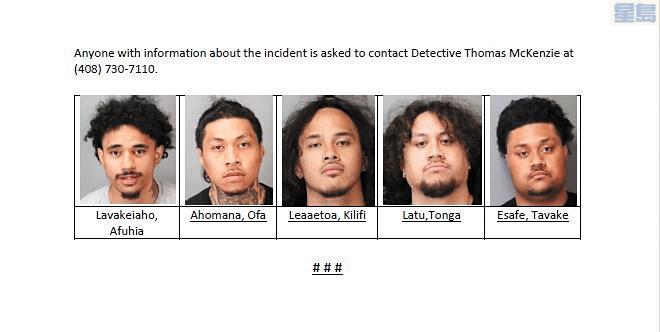 被捕五人分別是Tonga Latu、Tavake Esafe、Ofa Ahomana、Kilifi Leaaetoa及Afuhia Lavakeiaho,已被關押聖他克拉縣監獄,所涉罪名包括持槍搶劫、入室盜竊、拒捕、駕車逃逸、共謀犯罪、持有盜竊工具、破壞公物等。