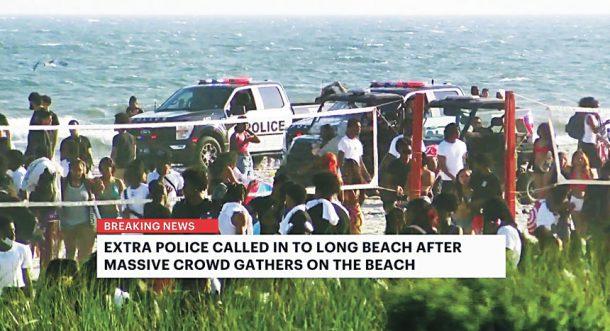 《紐約郵報》報道,13日下午6時左右,警員趕至一向寧靜的長灘,原因是大群青少年忽然湧入。最新畫面顯示,警員到場圖控制亂象,但被人潮淹沒,期間更傳來多聲槍響。其他片段顯示,有青少年跳上警車頂跳電臀舞、數百人爬上救生台。當局表示,當人群出現時,海灘上沒有救生員值班。