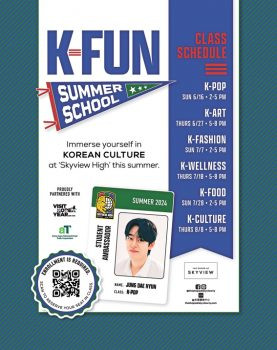 炎炎夏日即將來臨,天景購物中心(The Shops at Skyview)去年廣受歡迎的「K-Fun」韓流文化節今年將擴大舉辦,從六月到八月與韓流粉絲們共度精彩的暑期時光,從6月16日起,天景購物中心還將變身為期間限定的「Skyview High 天景高中」,接連六周舉辦不同主題的韓流暑期課堂,包括音樂、藝術、時尚、健身、美食與文化六大主題,首周還將請到韓國偶像歌手鄭大賢特別演出,活動精彩可期。