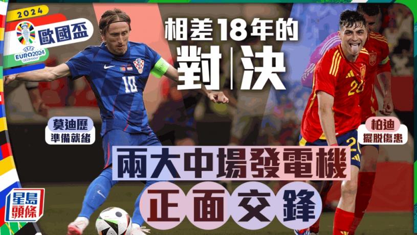 西班牙和克羅地亞在今晚歐洲國家盃B組首輪碰頭,前者效力巴塞隆拿的中場新星柏迪,與格仔軍的皇家馬德里老將莫迪歷,來到國家隊層面再次狹路相逢。柏迪已走出傷患陰霾回勇;莫迪歷今季則較少上陣而精力充沛,兩位年齡相差18年的技術型中場大師各有優勢,今場對決勢難分高下。(Now618台周日凌晨0:00直播)