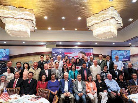 秦振國(右六)競選籌款會各界嘉賓到場造勢支持。 競選團隊提供