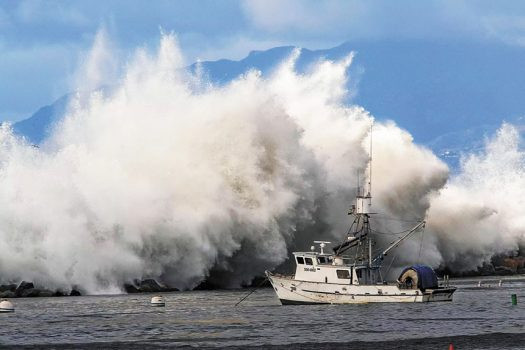 12月,巨浪沖過雷丹度灘的碼頭。洛杉磯時報