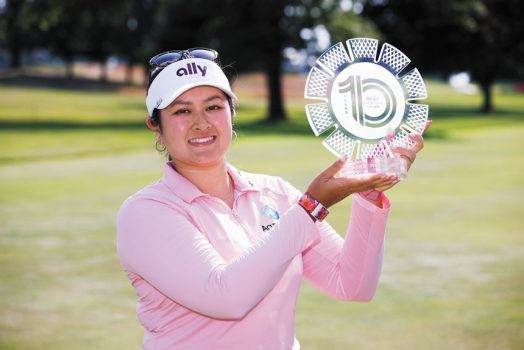 莉利婭舉起梅傑爾精英賽獎盃。網上圖片