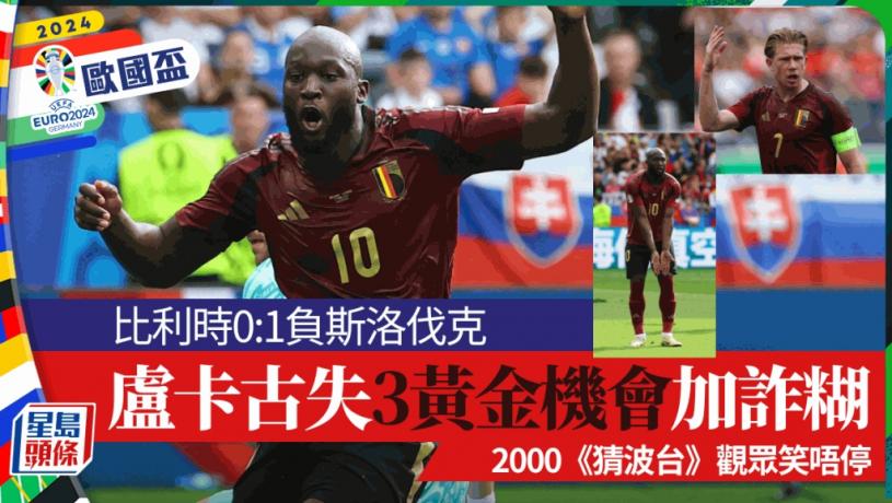 歐國盃E組分組賽首輪,再爆出冷門,繼早場羅馬尼亞3:0大勝烏克蘭後,小組首名大熱門比利時在前鋒盧卡古(Romelu LUKAKU)諧星級表現下,以0:1被斯洛伐克擊敗,現時羅馬尼亞以3分暫列榜首。全場盧卡古共錯失3個黃金機會兼有兩球炸糊,逾二千一百名收聽YouTube@猜波台即場評述節目《實況好波》的球迷紛紛表示:「笑到我停唔到。」