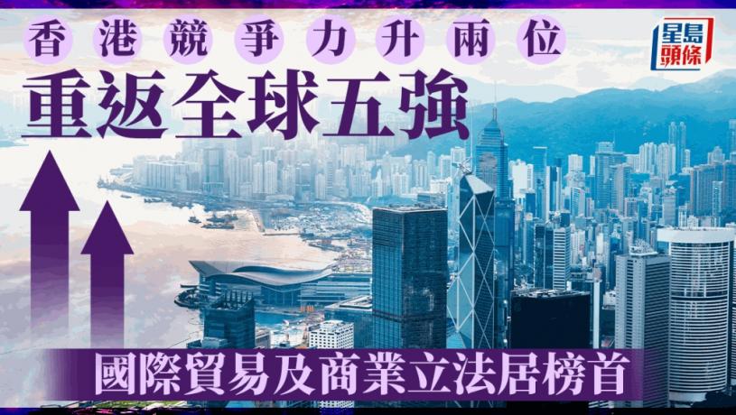 瑞士洛桑管理學院(IMD)今天(18日)公布「2024年IMD世界競爭力年報」,香港今年排名升兩名,重返全球五強,在亞洲國家中僅次於新加坡。