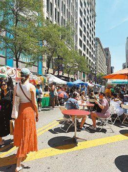 芝加哥環路聯盟、芝加哥觀光局、芝加哥市府在2024年再接再勵的舉辦「周末在州街」(Sunday on State)的戶外與市集活動。當天,芝加哥的氣溫是超級酷熱,艷陽高照,水銀柱直飆升至華氏94度,加上當天濕度高,人們走在無遮蓋的馬路上,就似靠在燒旺的烤爐旁、渾身大汗淋漓。