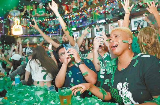 「凱爾特人加油!」人群高呼。有人跳舞。有人唱歌。有人尖叫。有人擁抱親人。有人擁抱陌生人。