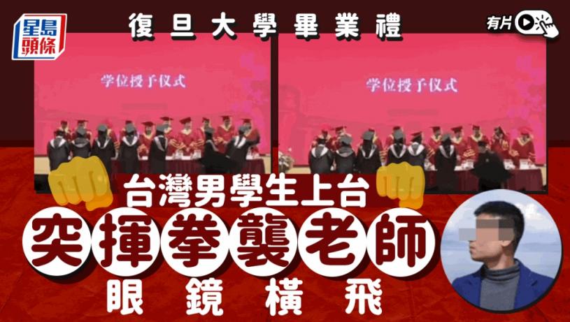 6月19日,一名學生在上海復旦大學江灣校區法學院畢業典禮上打了台上老師一拳,隨後離開。有傳涉事學生來自台灣。事後,復旦法學院一名老師向中央社記者證實,涉事的夏姓學生是台灣人。