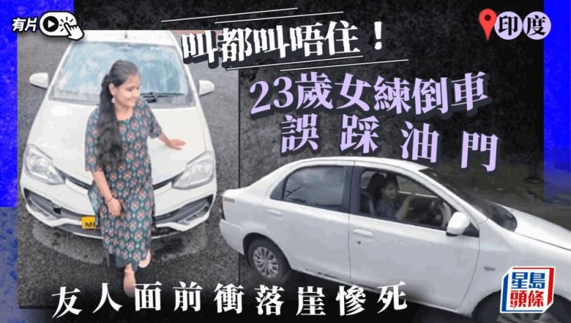 許多車禍都是因為誤踩油門所致,印度近日亦有人為此釀成意外,最後還喪掉性命。一名女子練習倒車,期間不小心誤踩油門加速,整架車快速衝下懸崖,女子在友人面前慘死,而這驚悚一幕亦意外被拍了下來,在網上瘋傳。