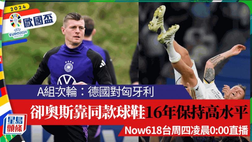 今屆歐洲國家盃復出領軍德國中場的卻奧斯,於揭幕戰5:1大炒蘇格蘭以99%的傳球成功率打破賽事紀錄。這名34歲的老將場上出色的表現背後,原來有賴穿著了長達16年的adidas pure11 Pro球鞋,近年球鞋停產製造商亦專門為他製造。 今晚德國於A組次輪對匈牙利,卻奧斯又會穿上這款專有球鞋,率領日耳曼軍進襲匈牙利後防。(Now618台周四凌晨0:00直播)