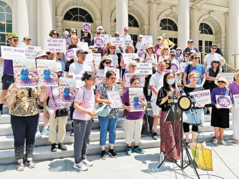 紐約市電動車安全聯盟數十人昨(20日)冒著酷暑要求市議會為606法案展開公聽,該法案又名為「陸瑞英法案」(Priscilla’s Law),陸瑞英是華埠啟蒙學校副校長,去年9月在格蘭街被電動單車撞至昏迷而死,這法案由市議員何頓提出,目前已有31位市議員支持,還需3人過半數就可以展開公聽會及投票,他們要求民眾在各區向市議員講述這法案的重要性,這項措施對於恢復街道和人行道的秩序和安全是合理且必要的。
