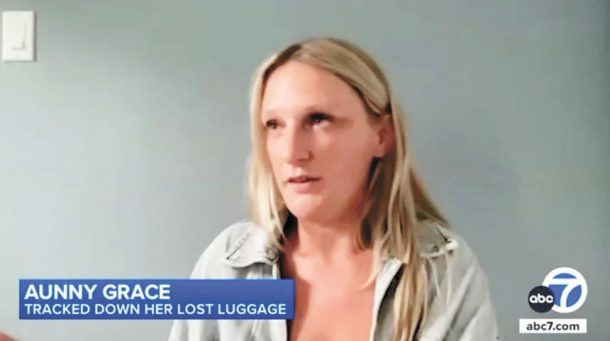 女乘客格蕾絲在行李中放置Apple AirTag追蹤器,讓她得以了解行李的“旅程”。ABC7新聞畫面