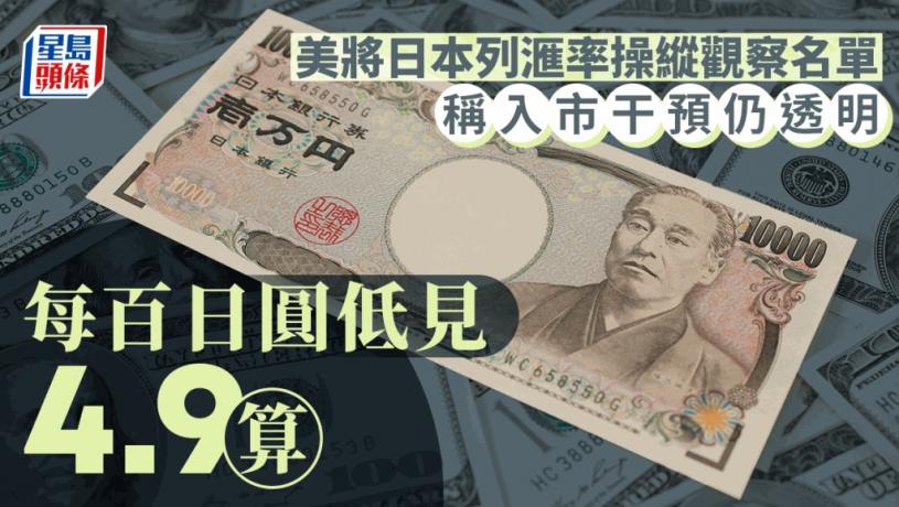 美國財政部昨日(20日)發佈半年期外滙政策報告,將日本加入滙率操縱觀察名單。
