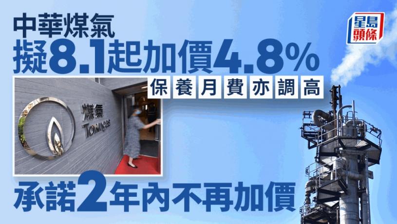 中華煤氣公司擬8月1日起調高標準煤氣收費4.8%。資料圖片